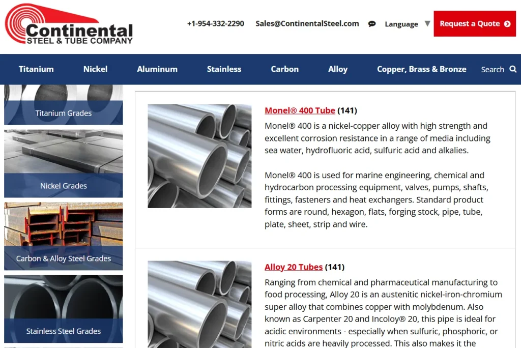 Founded in 1985, Continental Steel & Tube Company supplies high-performance metals and specialty alloys worldwide. It serves industries such as aerospace, construction, and marine with reliable materials that meet strict industry standards.